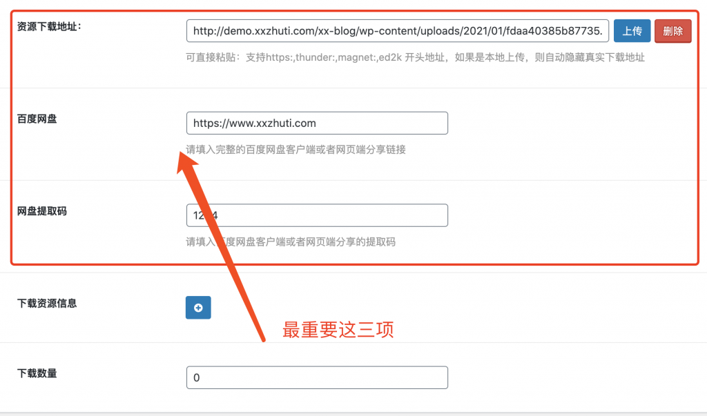 下方填写资源的具体信息