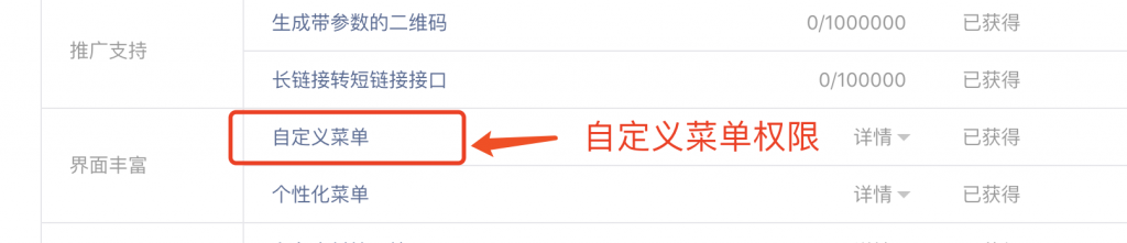 接口权限中看看是否有自定义菜单权限,若无则不能使用自定义菜单功能。